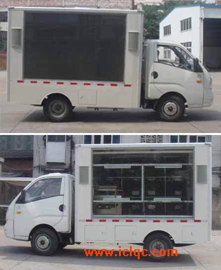 該車是用于廣告宣傳和科普宣傳專用車輛。車輛右側(cè)選裝LED屏,左側(cè)選裝滾軸裝置。側(cè)防護(hù)和后防護(hù)與車輛結(jié)構(gòu)為一體。車輛后部下邊緣離地高度 | ||