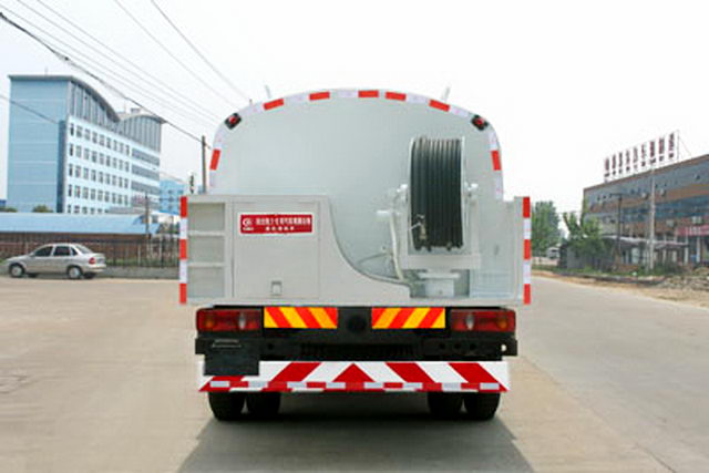 組成部分:主要由東風(fēng)原裝底盤(全國聯(lián)保)、水罐、水路系統(tǒng)、液壓系統(tǒng)、卷管器、沖洗管道、高壓噴頭等組成。 水路系統(tǒng):包括水罐、高壓水泵(意大利進(jìn)口泵)、進(jìn)水管、泄水截止閥、濾水器、水位表、進(jìn)水截止閥、水壓表、壓力表開關(guān)、高壓噴頭、高壓三通閥、卷筒。 液壓系統(tǒng):包括油位計(jì)、油箱、過濾器、閘閥、油泵、溢流閥、節(jié)流閥、油壓表、單向閥、油馬達(dá)、換向閥、單向閥、開關(guān)。 選裝:可加裝灑水裝置,安裝綠化灑水炮、前沖、后灑、側(cè)噴,可進(jìn)行綠化灑水、噴霧、壓塵、高壓沖洗路面,還可加裝吸污功能,集清洗、吸污于一體。 產(chǎn)品特點(diǎn):具有壓力高、節(jié)約水、作業(yè)時(shí)間長、清洗效果好的特點(diǎn)。 工作范圍:主要用于清洗城市下水道的沉積物,疏通下水道。也可用于清洗工業(yè)排液管道、壁面等,并可兼作灑水、運(yùn)水和沖洗公路用,緊急時(shí)可用于救火。