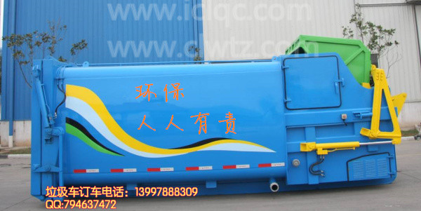 移動壓縮式垃圾箱,是一種集垃圾自動收集、壓縮和垃圾暫時存儲為一體的垃圾收集箱。它由箱體總成和控制系統(tǒng)兩大部分組成,移動壓縮式垃圾箱通過控制系統(tǒng)來控制填塞器進行垃圾的壓縮。由17t拉臂車運輸,能與之匹配;在垃圾處理場與17t拉臂車配合使用,實現(xiàn)垃圾自卸,保證垃圾卸料順暢并確保在傾卸后,箱體內(nèi)和后門無殘留垃圾。