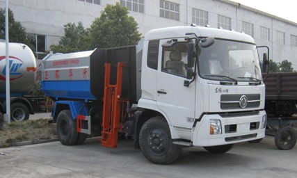 垃圾車之車廂可卸垃圾車說明介紹:車廂可卸垃圾車又稱拉臂式垃圾車,本產(chǎn)品主要用于各種環(huán)衛(wèi)市政及大型廠礦部門運載各種垃圾,車廂可卸垃圾車主要由液壓系統(tǒng),操作系統(tǒng)組成。垃圾箱可自吊上放下,可自行傾倒垃圾,上下一次工作循環(huán)時間50s.該車的特點是一車能配多個垃圾箱。能實現(xiàn)一臺車與多個垃圾箱聯(lián)合作業(yè),循環(huán)運輸,充分提高了車輛的運輸能力。