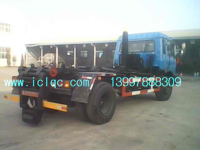 程力專用汽車箱體可卸式垃圾車又稱拉臂式垃圾車(以下簡稱垃圾車)是用于城鎮(zhèn)袋裝、散裝生活垃圾物的收集、運輸、卸料作業(yè)的專用車輛。 該車是由汽車底盤、伸縮拉臂、主臂油缸、活動套臂、套臂油缸、附車架、翻轉(zhuǎn)架、支撐腿、鎖緊架、鎖緊油缸及多路換向閥等組成。翻轉(zhuǎn)架一端連在附車架上,其另一端設(shè)有活動套臂,中間安裝有橫向和縱向鎖緊系統(tǒng);主臂油缸一端連在活動套臂上,另一端連接在附車架上;橫向鎖緊機構(gòu)通過鎖緊油缸的動作可以將垃圾箱體與翻轉(zhuǎn)架上連為一體,再通過伸縮油缸的伸出使活動套臂與翻轉(zhuǎn)架連為一體,最后在主油缸伸出時形成自卸角,從而產(chǎn)生自卸;鉤箱和放箱是橫向鎖緊處于伸出松開狀態(tài),而套臂油缸處于收回狀態(tài),伸縮拉臂回到活動套臂中,縱向鎖緊機構(gòu)脫開,工作拉臂處于最短時進行鉤箱與放箱。