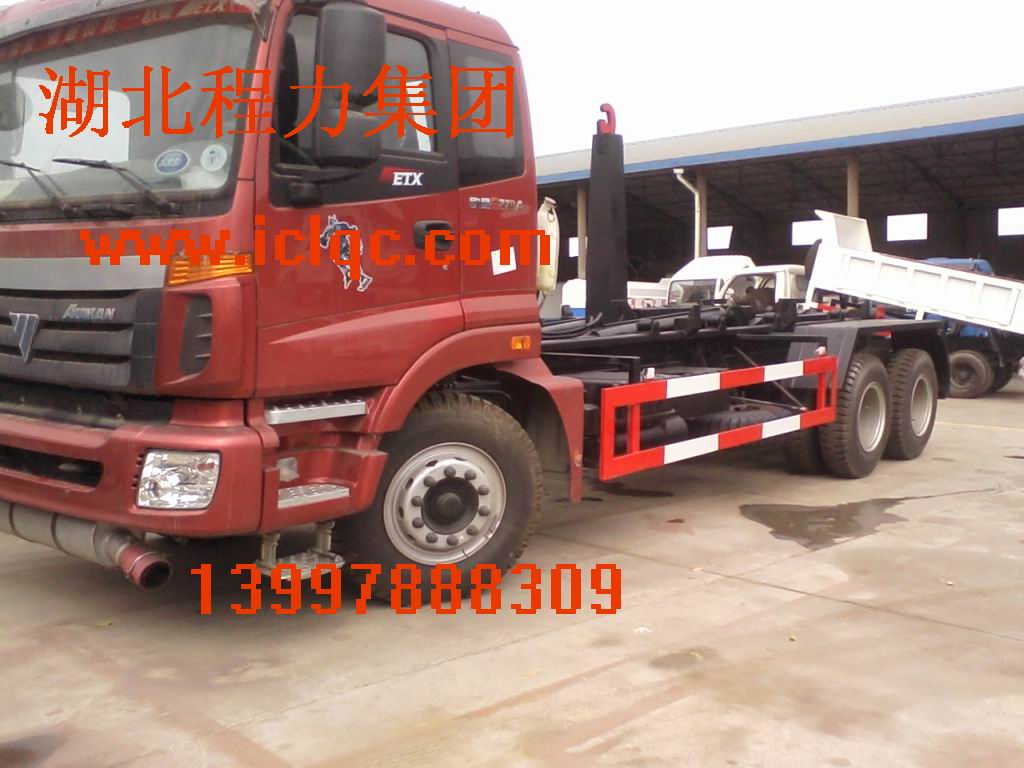 程力專用汽車箱體可卸式垃圾車又稱拉臂式垃圾車(以下簡(jiǎn)稱垃圾車)是用于城鎮(zhèn)袋裝、散裝生活垃圾物的收集運(yùn)輸、卸料作業(yè)的專用車輛。 該車是由汽車底盤、伸縮拉臂、主臂油缸、活動(dòng)套臂、套臂油缸、附車架、翻轉(zhuǎn)架支撐腿、鎖緊架、鎖緊油缸及多路換向閥等組成。翻轉(zhuǎn)架一端連在附車架上,其另一端設(shè)有活動(dòng)套臂,中間安裝有橫向和縱向鎖緊系統(tǒng);主臂油缸一端連在活動(dòng)套臂上,另一端連接在附車架上;橫向鎖緊機(jī)構(gòu)通過鎖緊油缸的動(dòng)作可以將垃圾箱體與翻轉(zhuǎn)架上連為一體,再通過伸縮油缸的伸出使活動(dòng)套臂與翻轉(zhuǎn)架連為一體,最后在主油缸伸出時(shí)形成自卸角,從而產(chǎn)生自卸;鉤箱和放箱是橫向鎖緊處于伸出松開狀態(tài),而套臂油缸處于收回狀態(tài),伸縮拉臂回到活動(dòng)套臂中,縱向鎖緊機(jī)構(gòu)脫開,工作拉臂處于最短時(shí)進(jìn)行鉤箱與放箱。 該車可將地下垃圾箱內(nèi)的垃圾及垃圾箱一同拉至車上運(yùn)走同時(shí)可自卸,且垃圾箱體采用液壓鎖緊或開啟,降低了工人的勞動(dòng)強(qiáng)度和改善了工作環(huán)境。該垃圾車的收運(yùn)方式是目前世界上廣泛采用的垃圾收運(yùn)方式,可以實(shí)現(xiàn)一車多箱,大大降低了配備成本和空間等等;