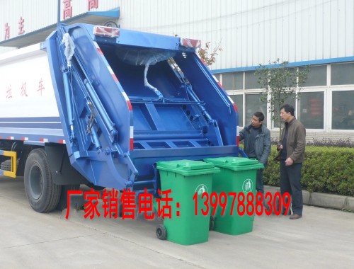 壓縮垃圾車多中翻桶(斗)機構不同用戶可根據(jù)不同的垃圾搜集方式,先裝不同的翻桶(斗)機構,翻標準垃圾鐵桶ZBT59003-88(300升)塑料垃圾桶(240升)隨車小垃圾斗(800升)密封遮蓋式垃圾斗(1400升)、大垃圾斗(3350升)