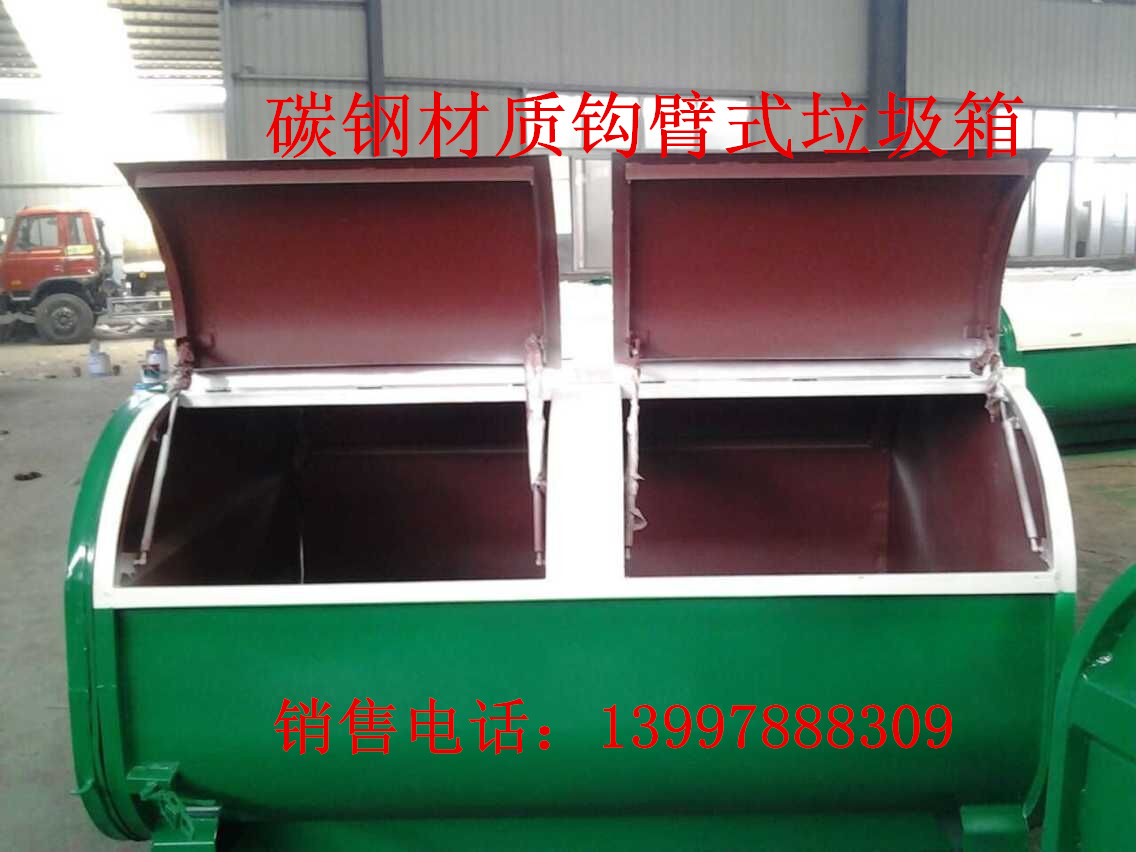鉤臂垃圾箱與拉(鉤)臂式垃圾車(chē)配套使用,收集清運(yùn)生活垃圾的好幫手,方便快捷。鉤臂垃圾箱材質(zhì)分碳鋼鉤臂垃圾箱和不銹鋼鉤臂垃圾箱兩種;容積有:2.5立方,3立方,4立方,5立方,6立方,8立方,10立方,12立方,16立方,17立方,18立方,20立方垃圾箱,功能可分:帶壓縮功能要8立方以上的鉤臂垃圾箱和不帶壓縮功能的鉤臂垃圾箱。不同的垃圾箱體配不同的鉤臂式環(huán)衛(wèi)垃圾車(chē)。