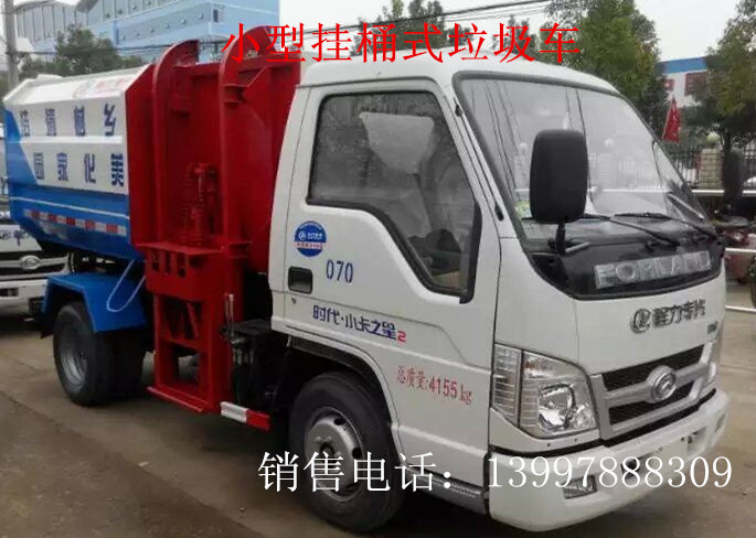 3、小型掛桶式垃圾車,該車的主要亮點在于一個車能配幾十個垃圾桶,能實現(xiàn)一臺車與多個垃圾桶聯(lián)合作業(yè),循環(huán)運輸,充分提高車輛的運輸能力。平時里可把垃圾桶放置在各個垃圾收集點,待垃圾桶裝滿后,該車通過垃圾液壓提升機構(gòu),把垃圾桶的垃圾自行倒入垃圾廂內(nèi),運到垃圾站后通過液壓來后卸。