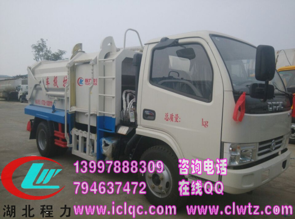 國(guó)五新款掛桶壓縮對(duì)接式垃圾車: 是一款垃圾車中熱銷產(chǎn)品,免交購(gòu)置附加稅,高配置、低價(jià)格,經(jīng)濟(jì)實(shí)惠,美觀大方,駕駛舒適,在享受中工作賺錢!采用東風(fēng)原裝底盤(全國(guó)聯(lián)保),具有整體結(jié)構(gòu)設(shè)計(jì)合理緊湊,使用效率高,廂體采用輕量化設(shè)計(jì)、運(yùn)載量大、封閉性能好;是一種安全、節(jié)能、環(huán)保、高效的新型壓縮式結(jié)構(gòu)環(huán)衛(wèi)專用車。整車長(zhǎng)不超過(guò)7.5米,常用發(fā)動(dòng)機(jī)包括玉柴、朝柴,東風(fēng)變速箱,7.00-16尼龍輪胎 ,斷氣剎。容積一般為3-4立方,根據(jù)客戶需求和各個(gè)地方上戶要求不同,容積各不相同。湖北程力公司為你提供更多垃圾車型號(hào)、垃圾車圖片、垃圾車配件、最優(yōu)的垃圾車價(jià)格.因裝配配置、專用車配件使用不同,使得垃圾車價(jià)格有所浮動(dòng);請(qǐng)立即點(diǎn)擊我們的聯(lián)系方式或給我們?cè)诰€留言,我們將會(huì)為您提供全方位的解決方案。銷售電話:13997888309(http://www.xn-l9qp5jwyxni1b.cn)