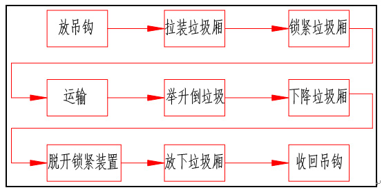 車廂可卸式垃圾車作業(yè)循環(huán)圖如下: