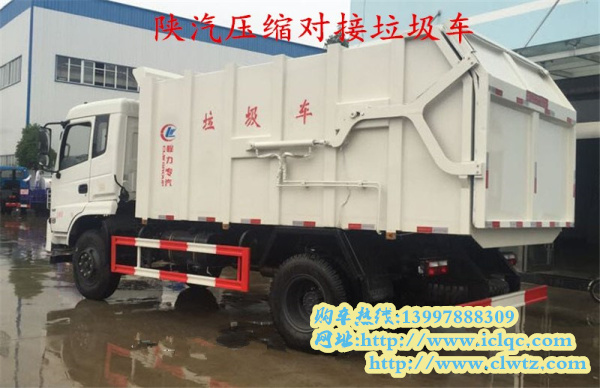 二、陜汽軒德對接式壓縮垃圾車,整車型號為CLW5160ZDJS5,底盤型號SX1168GP5,總質(zhì)量15.8噸,額定質(zhì)量7.1噸,整備質(zhì)量8.5噸,4600mm軸距,玉柴160馬力國五柴油發(fā)動機(jī),外形尺寸為7920*2500*3300mm,箱體容積在8立方左右。該款對接式壓縮垃圾車全自動操作,其壓縮密度可達(dá)0.8T/m3。