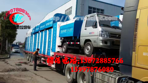 小型垃圾運輸車貨箱可以卸下來,在投入使用后,一臺這樣的車配備五個垃圾箱,環(huán)衛(wèi)工每天定時、定點的將空垃圾箱放下,然后將裝滿垃圾的貨箱裝上運走,能實現(xiàn)一車與多個垃圾箱聯(lián)合使用,循環(huán)運輸,大大提高了垃圾收集和運輸?shù)男?。同時不會出現(xiàn)因為沒有垃圾箱亂扔垃圾的現(xiàn)象出現(xiàn)。