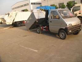 微型拉臂式垃圾車采用機電液一體化技術(shù),借助機、電、液聯(lián)合自動控制系統(tǒng)及手動操作系統(tǒng),通過車廂收集生活垃圾。貨廂上帶蓋(倒垃圾時可翻開),一車可配多個垃圾箱,適用于生活小區(qū)收集垃圾 ,方便宜用,收集容量大,調(diào)換貨廂快捷方便,車輛使用效率高